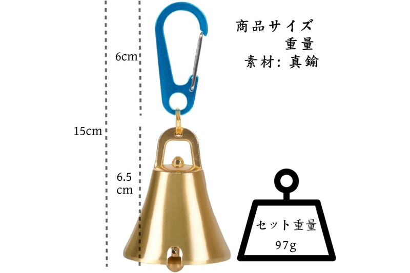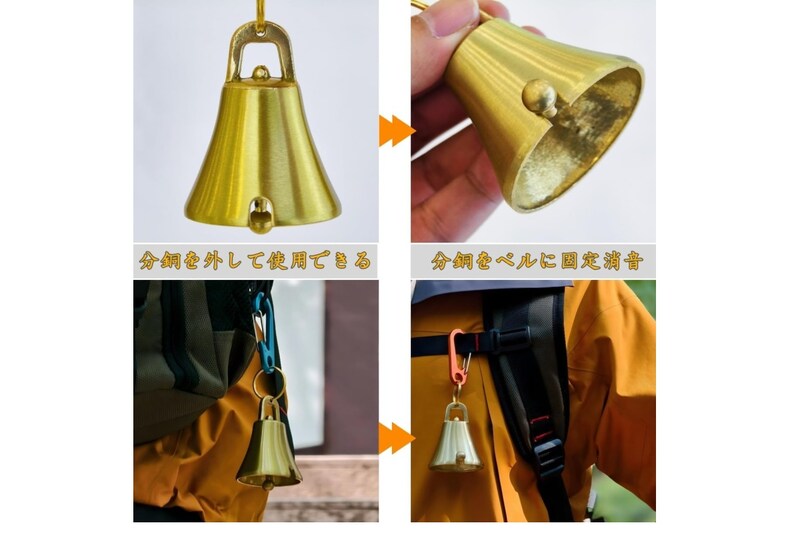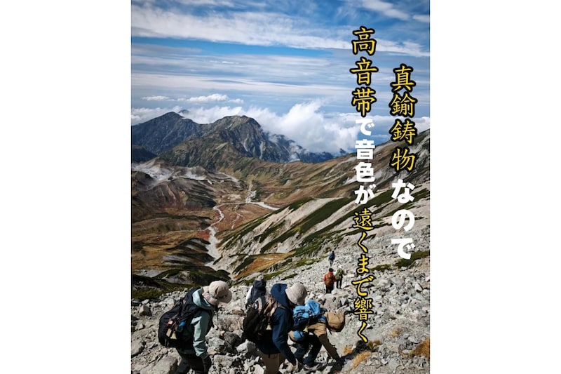 大型の真鍮製ボディによって、奥行きのある澄んだ音色を響かせ、周囲に自分の存在を知らせることで、クマなどの野生動物との遭遇を避けるために役立ちます。