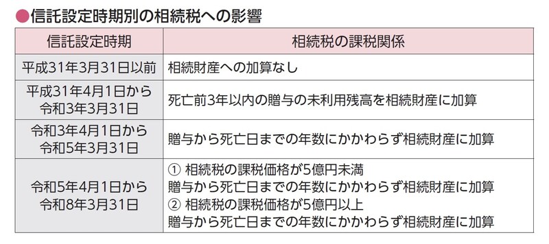 [図表2]信託設定時期によって相続税の影響が異なる