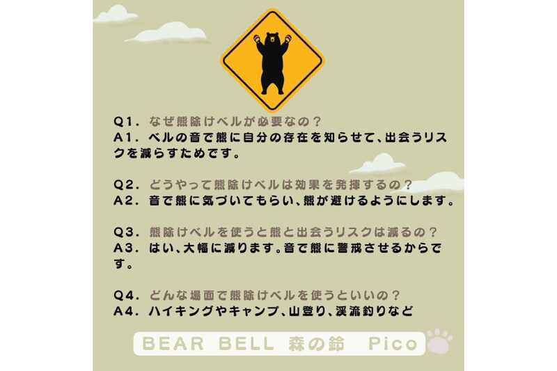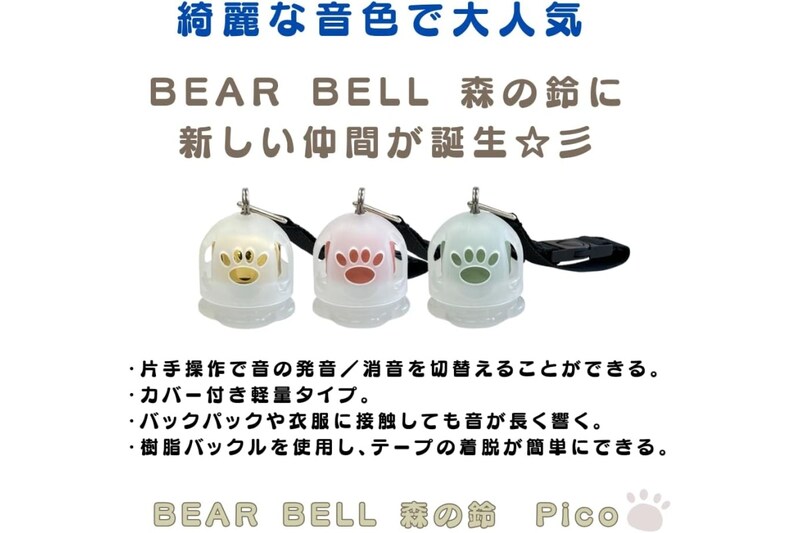 この鈴は、独自の製法で作られた澄んだ高音が特徴で、遠くまで響く音色によって野生動物に自分の存在を知らせることができます。