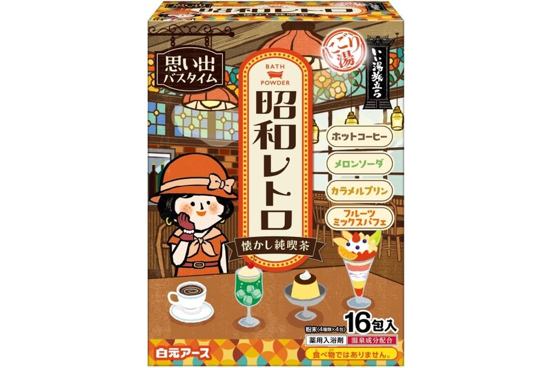 白元アース いい湯旅立ち 昭和レトロ 懐かし純喫茶 16包入 炭酸 入浴剤 にごり湯 温泉タイプ 個包装 タイムスリップ 保湿 薬用 疲労回復 日本製 医薬部外品