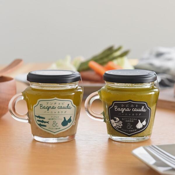そのままでも美味しい天然の海の幸を、青森産のにんにくと大山純正生クリームと合わせたかにみそバーニャカウダ&アンチョビバーニャカウダ。手土産ギフトや、おつまみにも最適です。