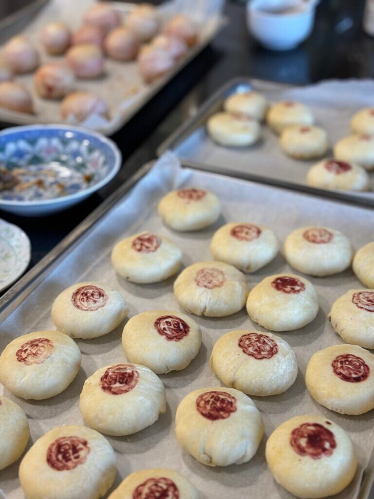 このタイプのお茶には、蛋黃酥(ダンファンスー)がおすすめ。パイ生地の中に小豆餡と塩漬け卵黄が入った、甘じょっぱい伝統菓子です。塩卵の黄身は、「夜空に浮かぶ月」をイメージしていて、中秋節に人気のある月餅としても知られています。その時季は、並ばなければ買えないほどの人気ぶり。