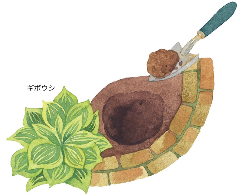 花壇では、夏の花が終わったら、さっそく土を掘り起こして耕します。土がぱさぱさしているようなら、腐葉土や堆肥などの有機質分をすき込んで土づくりして、秋花壇の準備をします。