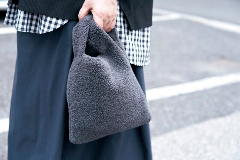 今シーズン人気のエコファーバッグ。「色違いで持っていて、コートの色に合わせます」と森さん。バッグの持ち手を交差させて持っても可愛い。