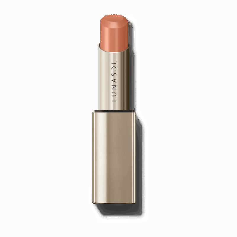 柔らかなオレンジベージュ。唇に密着して、まるで何もつけていないような軽いつけ心地。ルナソル フュージングカラーリップス10 ¥4,620/カネボウ化粧品