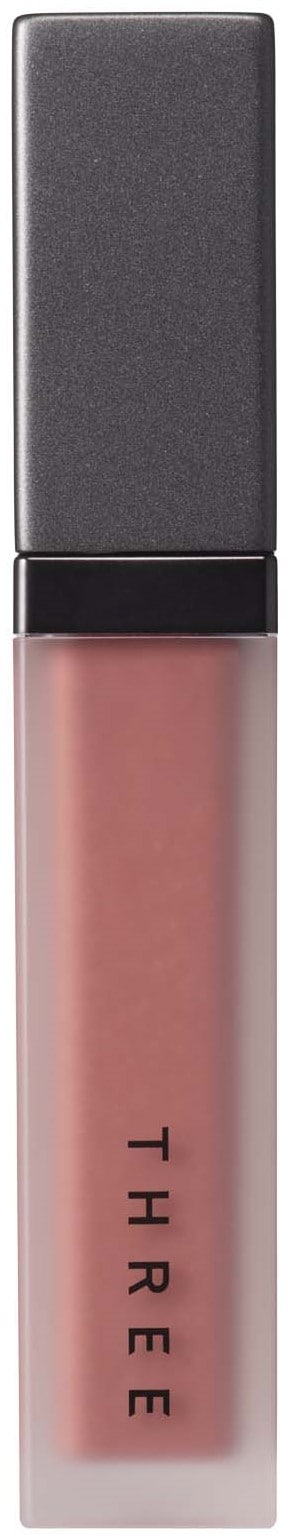 ゴールドやパープルなど多彩なパールが入った、華やかなピンク。みずみずしく、なめらかに伸びるリキッドタイプ。THREE ディヴァインリップジェム 10 ¥3,850/THREE