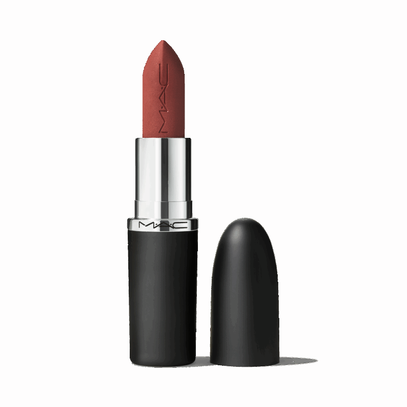 洗練された印象のピンクベージュ。マットな質感でありながら、唇になめらかに伸びる。マキシマル シルキー マット リップスティック アンボザード ¥4,400/M・A・C