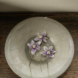 窓辺の小さな器から、小さなお花が顔を出しています。