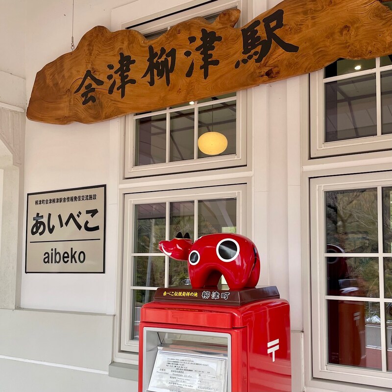 柳津町は“赤べこ伝説発祥の地”であるため、お店の外観にも可愛らしい赤べこのイラストが溢れています。