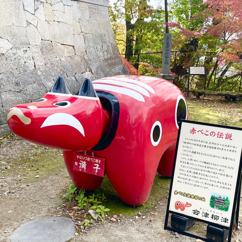 また、お寺にある赤べこ「満子」は、駅にある赤べこ「やなぎまる」観光駅長のお母さんなんですって。