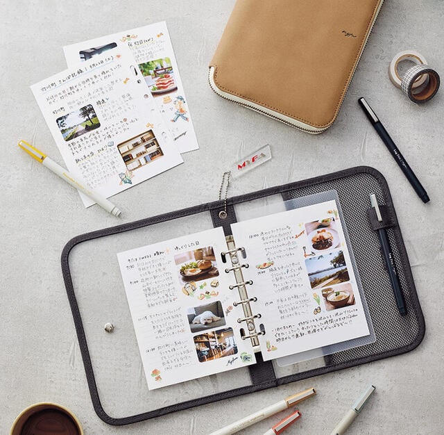 「推し活」で楽しむ日々の活動を記録することで、その時の感情や思い出をリアルタイムで振り返ることができる。今回myfaでは、「推し活」×「ライフログ」を提案することで、そんな日常の中にある「推し」を目に見えるかたちで記録として残すことで、より快適で楽しい推し活ライフを後押していく。お気に入りのコレクションを表紙に見せられる「クリヤーバインダー」(税込2,090円)は、ミニ6穴バインダーで、コレクションとライフログを一緒に持ち運べる。キャラメルブラウンとチャコールブラックの2色。