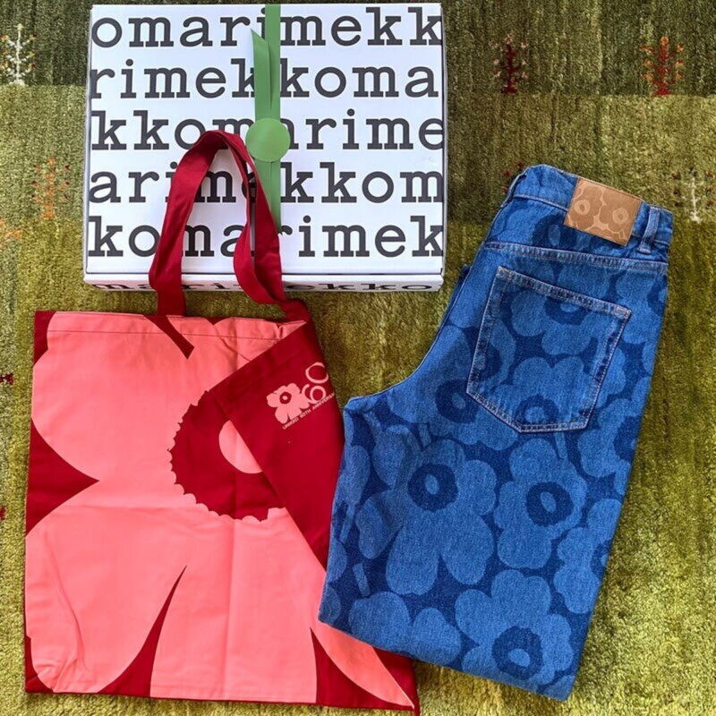 マリメッコの代表的な「ウニッコ柄」がプリントされたこのデニム。