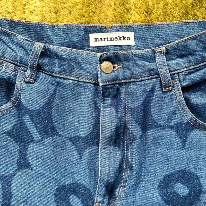 マリメッコの代表的な「ウニッコ柄」がプリントされたこのデニム。