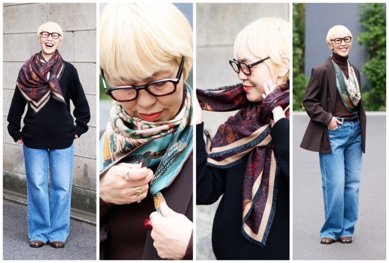 顔まわりを華やかにし、魅力アップ! 「スカーフ」の巻き方3選