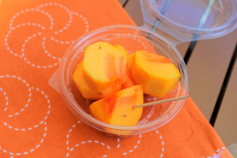 さて、お待ちかねの「刀根早生柿」を実際にいただきました。まず驚くのは果肉感。あむっと直接かぶりつきたくなるほど果肉がしっかりしているのに、口の中でとろりと広がる甘みは濃厚。にもかかわらず後味はさらりとさわやかなのです。もう一切れ、もう一切れと、つい手が伸びてしまうほどです。
