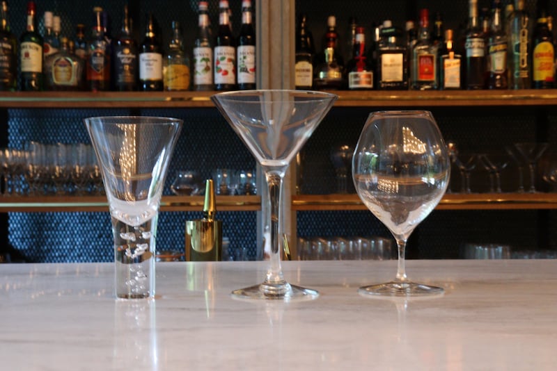 3種類あるという、グラスのデザイン。通常パフェを提供しているお店のパフェグラスは1種類のみのところも多く、3種類使い分けているのは珍しい。カクテルグラス、ワイングラスなど、その時のパフェのテーマに合わせているそう。また写真一番右のワイングラスを使う時は、ボトムとトップでテーマを変え、一つのパフェで二つの味が楽しめるような工夫もされています。