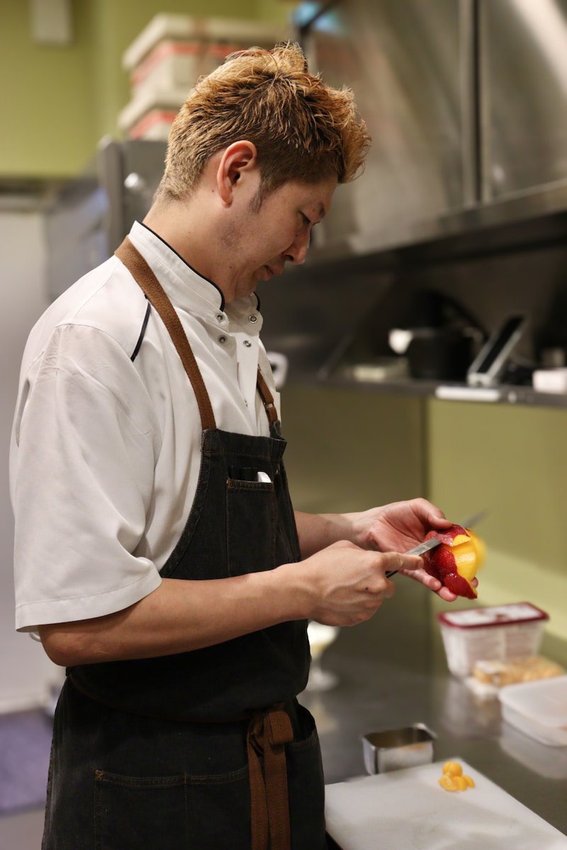このダイニングで腕をふるうシェフ・パティシエ渕上 祥平氏は、30歳でフランスへ渡り、フォンテーヌブローのパティスリー『フレデリックカッセル』にて修行を積みミシュラン一つ星店フランス料理店『壺中天』、パリのレストラン『Sola』などで経験を積む。2021年から同店のシェフ・パティシエを務め、毎月の予約制のパフェは、パフェ好きの間でも話題になり、毎回満席に。渕上シェフが奏でる、優雅さを感じるパフェの美しさは思わずため息が出るほど。