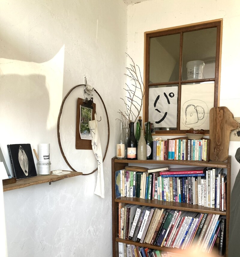 20分ほど待って入店、入り口にはたくさんのパン関連の本がありました。