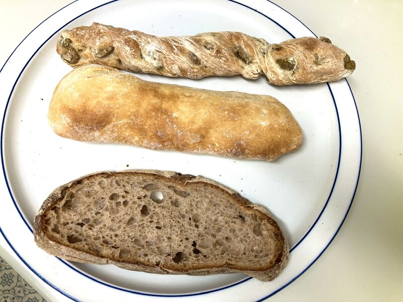 硬めの生地にオリーブがぎっしりで、ワインのお供にぴったりのパン。