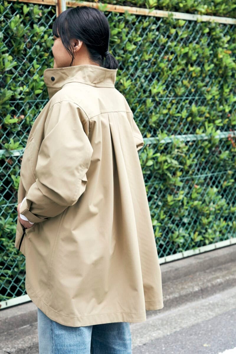 後ろ身ごろには、ギャザーが入っていて中に厚手のニットを着ても、もたつかずシルエットがきれいに決まります。