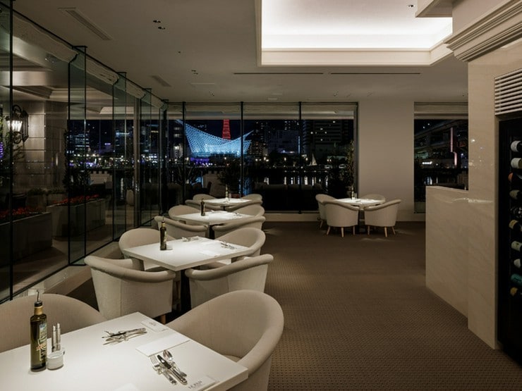 夜はドラマチックな夜景が広がり、日中は明るい光に包まれる店内