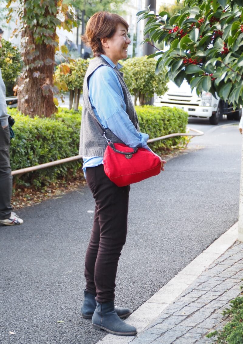 ご主人と一緒に、自転車&徒歩で渋谷・代官山周辺を散策していたRurichocoさん。この日のコーディネートは、動きやすさを意識したパンツスタイル。シャツとベストで品よくまとめ、「ユニクロ」のストレッチパンツをブーツイン。アクティブな休日仕様のおしゃれを楽しんでいます。