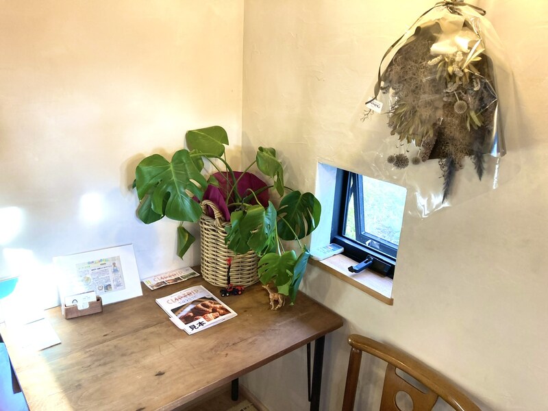店内もまたウッディーな空間で、観葉植物とドライフラワーが飾られた小さなイートインスペースもありました。