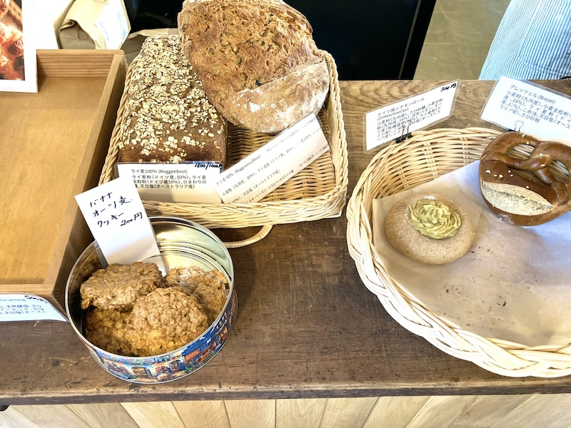 この日のラインナップは基本となる大きなパン、ライ麦50(ライ麦粉50/ライ麦全粒粉50)はプレーンとレーズンの2タイプ。加えてブレッツェルやシナモンロール、ターラー(後述)などです。
