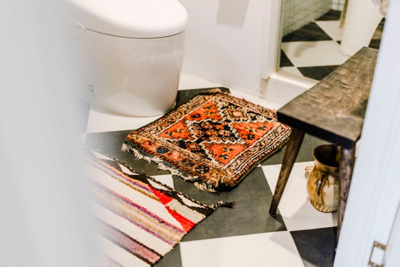 平井かずみ(以下、平井):私は石井さんと一緒に仕事をしたときに、ラグを2枚重ねて使っていたのが印象的で。大きなサイズのものを買うとなると値段的にも勇気が入りますが、こうやって手頃な価格の小さなものを組み合わせてコーディネートすることもできるんだって発見があって、そこが入口でした。まず2枚選んで家に敷いてみると、やっぱり気持ちが上がるんですよね。家具と比べて手軽に入れ替えることもできるから、気分転換にもなる。