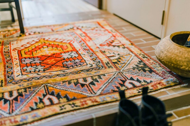 石井佳苗(以下、石井):もともと、仕事のスタイリングでラグをよく使っているうちに自宅にもほしくなり、東京・青山の『グランピエ』でトライバルラグを買ったのがきっかけです。トライバルラグは、遊牧民が生活道具のために作ったものなので柄やサイズが基本的に一点物。トルコやアフガニスタン、イランなど作られた地域によっても柄が違っていて、トルコの中でも地方によって変わるんです。毛足の長さで足触りも異なるので、季節に合わせて使い分けたり。一枚で部屋の雰囲気がガラッと変わるから楽しいですね。