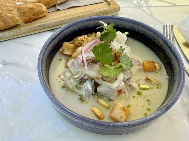 それとペルーを代表する伝説のシェフ、ガストン・アクリオ氏のレシピによるセビーチェというメニューもあったので、それもいただきました。解放感と緑の安らぎのなかでいただくランチはとても気持ちのいいものです。