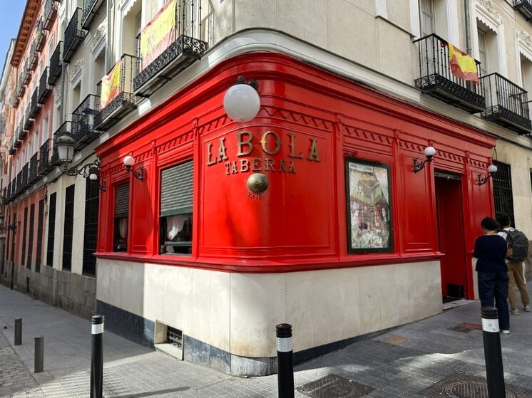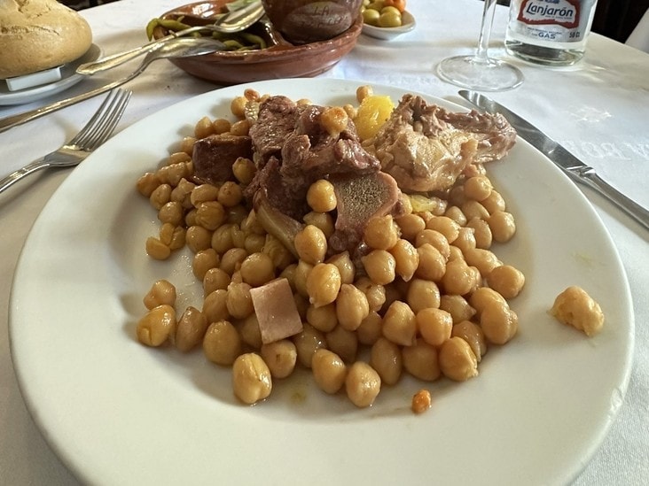 王宮まで行ったついでに、郷土料理の老舗【La Bola】でコシードをいただきました。これは有名な郷土料理で、肉や豆を煮込んだシンプルなものです。煮込んだ壺ごと食卓に持ってきてくれ、まずはスープをのみ、それから中身を食べるというスタイル。郷土料理の豪快さがよくわかります。これだけでお腹がいっぱいです。