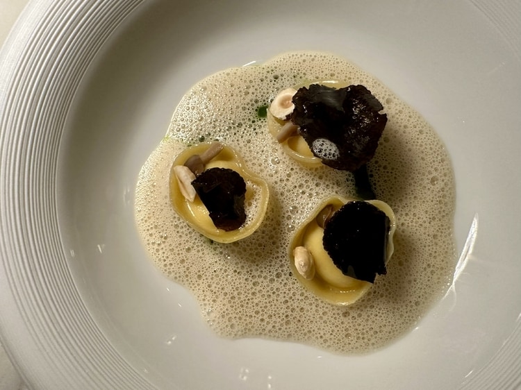 メインの一つでしょうか。白トリュフの香りをまとった舌平目です。熟成酒が使われたソースは優しく香り高く、深みのある一皿です。
