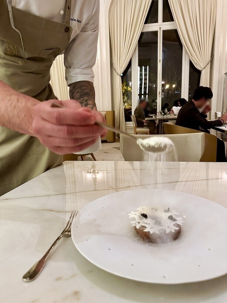 次の日もホテルで過ごし、街を散策したあとにメイン・ダイニングの【ディエッサ】でディナーをとりました。国王アルフォンソ13世のサロンだった場所がこのレストランになっており、現在ミシュラン2つ星を獲得しています。