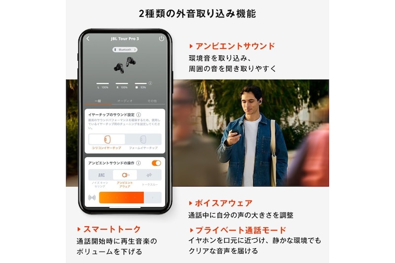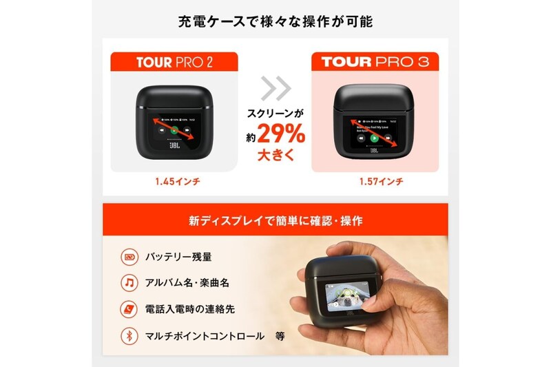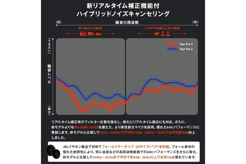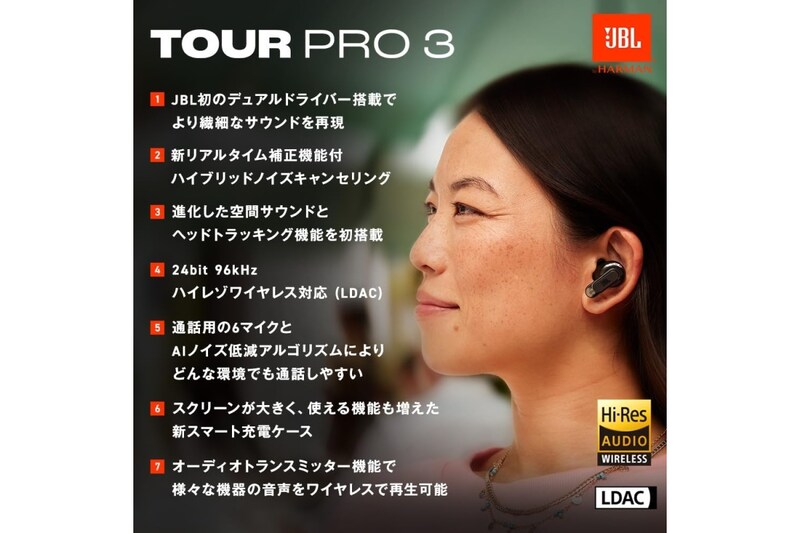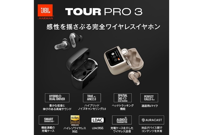 JBL TOUR PRO 3 は、アクティブノイズキャンセリングと高音質再生を両立したワイヤレスイヤホンです。
