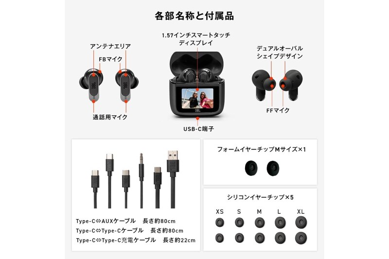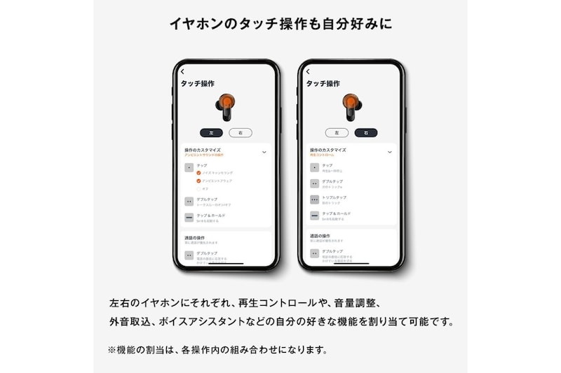 Amazonでみるケースからイヤホンを出さなくても主要な設定を操作できるため、外出中にも扱いやすい仕様です。