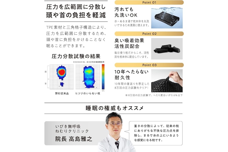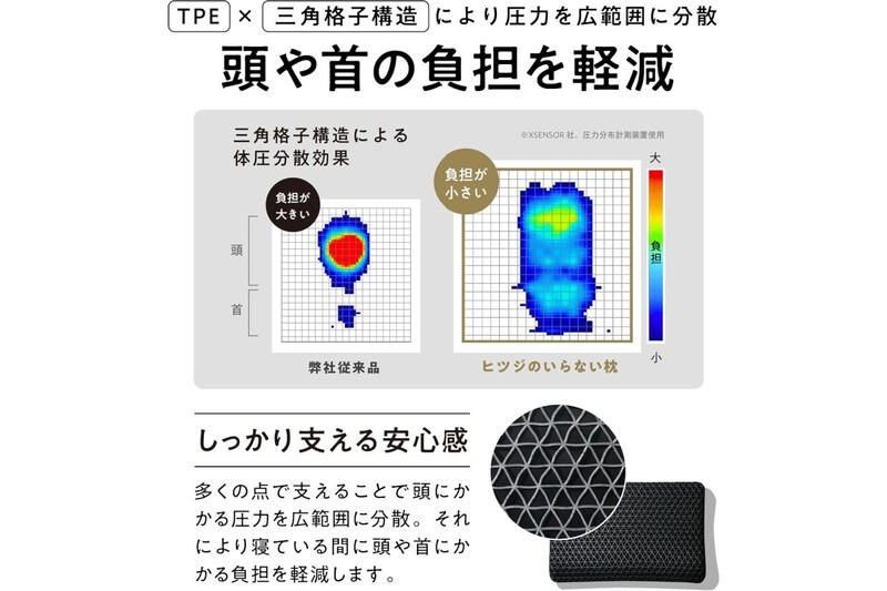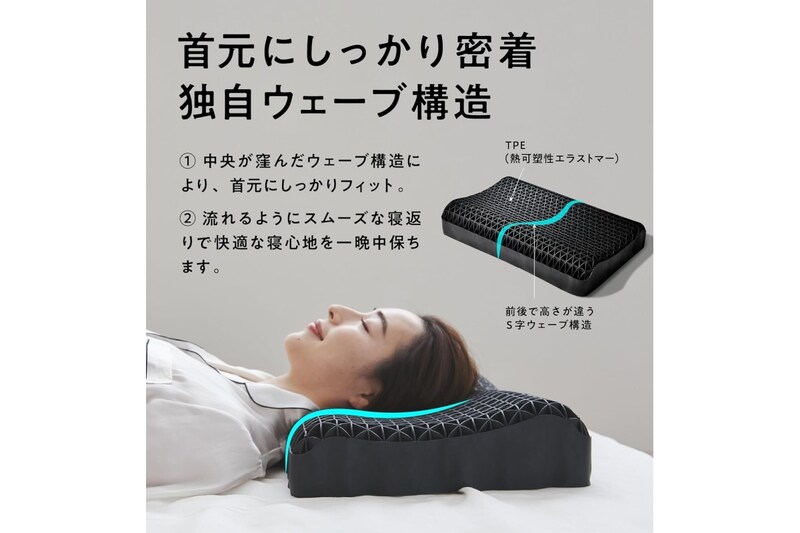 寝返りを打ってもしっかり反発してくれるため、寝姿勢が崩れにくく、朝の首や肩のこり対策としても役立ちます。