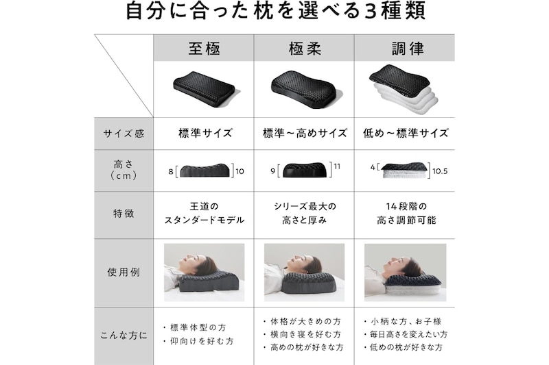 硬めの枕が好きな人や、寝姿勢をしっかり支えたい人に特に向いています。