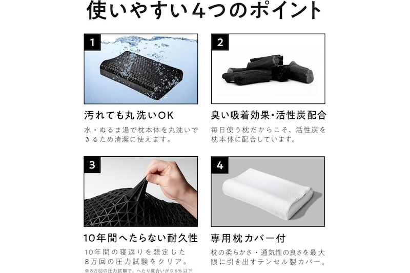 通気性の良い構造で、枕の内部に熱や湿気がこもりにくく、蒸れを気にせず使えます。