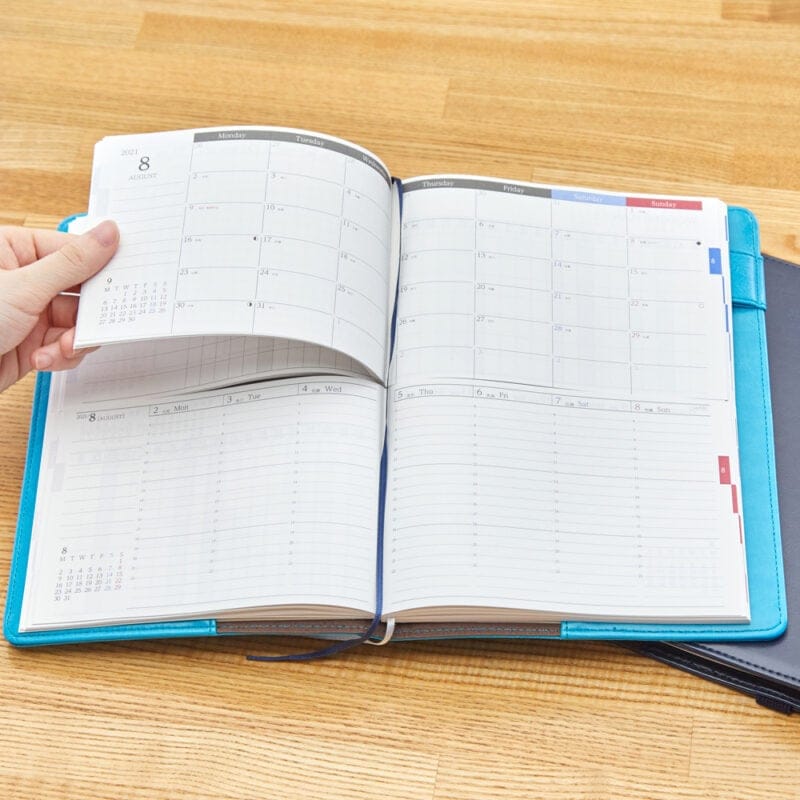 独自の2段構造だから、フリーランスやダブルワークなどで日々細かくスケジュールを管理したい方にぴったりの手帳「セパレートダイアリー」。1ページの上下が分割されているため、パッと見開いただけで月と週、月と1日の予定を同時に一気に見渡すことができるのが特徴。さまざまなページを自在に開きながら、効率よくスケジュール管理できます。