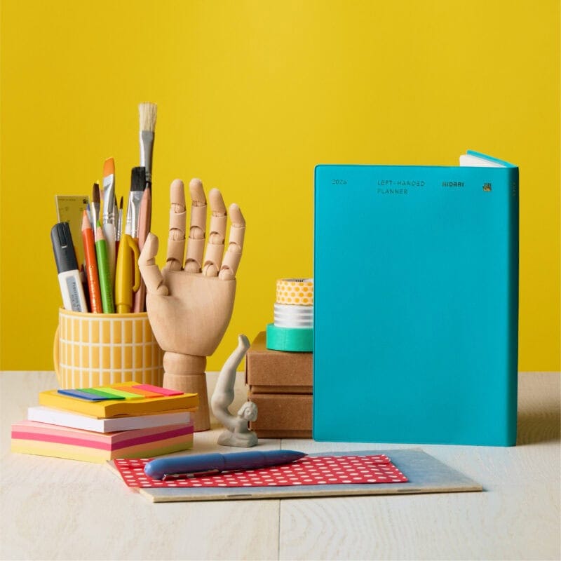 ハサミ、スープレードル、片刃の包丁、缶切り、万年筆……人類の約10人に1人は左ききであるにもかかわらず、私たちが日常的に使う道具のほとんどは右ききの方に合わせてつくられています。無論、手帳もそのひとつ。「毎日使う手帳も自分の利き手に合られたものを選びたい」、そんな左ききの方の切なる願いを形にするため企画立案されたのが、この「左手で書く人のための手帳」です。