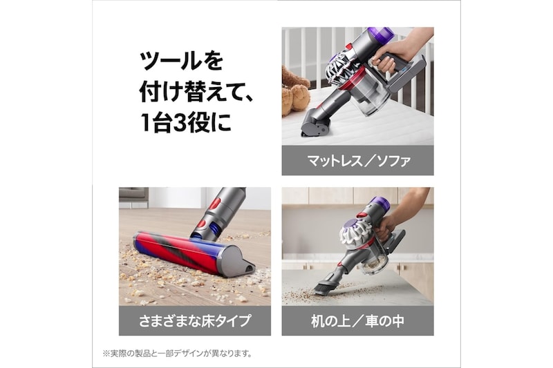 ヘッドや付属ツールを使い分ければ、フローリングだけでなくカーペット、すき間、棚の上など、場所に合わせた掃除がしやすくなります。
