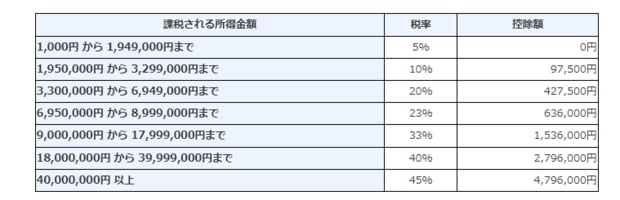 【所得税率の早見表】