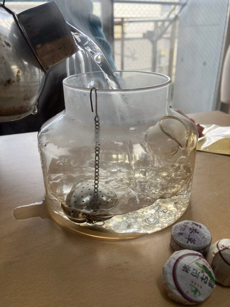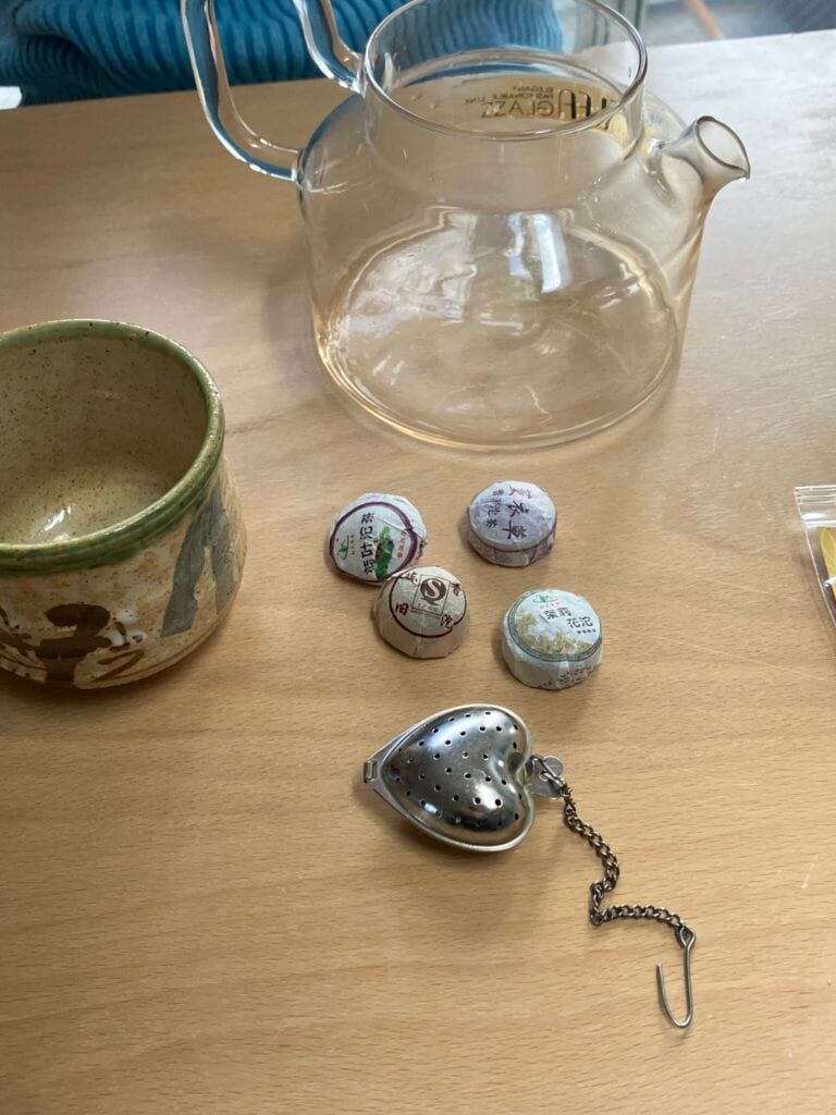 おうちに上がると、台湾のお土産でもらったお茶を淹れてくれた。漢字で何か書いてあるけれど、意味はわからない。かわいい字面のパッケージを選んで淹れてもらった。“ジャケ茶”淹れだ。