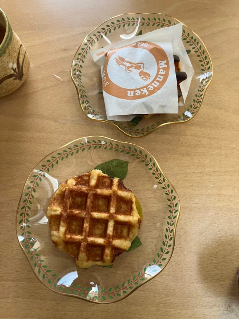 僕は、前日に買っておいた『銀座マネケン』のワッフルを持って行った。マルバツゲームができそうな形が好きで、昔はよく大阪駅で買って食べていたので愛着がある。変わらない味みたいなものにすごく弱い。