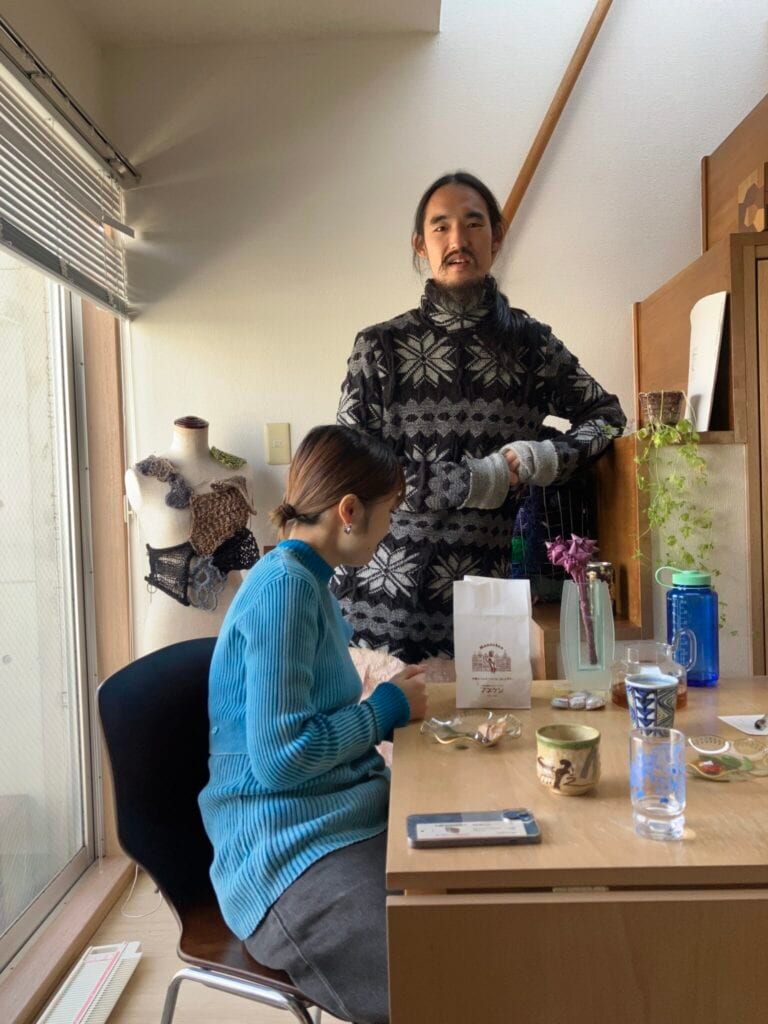 「どうしてニットを表現方法に選んだのか?」と聞いたら、花さんは数分考え込んでいた。