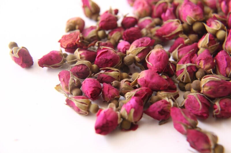 バラ茶の原料となるマイカイカ(玫瑰花)は、滞った血(けつ≒血液)を散らして血行をよくする性質に優れているので、シミ対策に最適。さらに、ストレスによるイライラの緩和にも役立ちます。