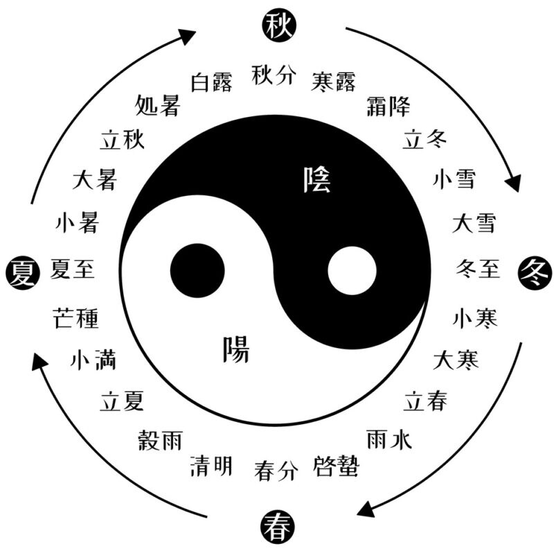 東洋医学には「自然界は陰気(いんき)と陽気(ようき)で成り立っている」という考え方があります。陰気とは暗く冷たく水分をもたらす力、陽気とは明るく熱く乾燥した力で、昼は陽気が満ちている時間、夜は陰気が満ちている時間となります。