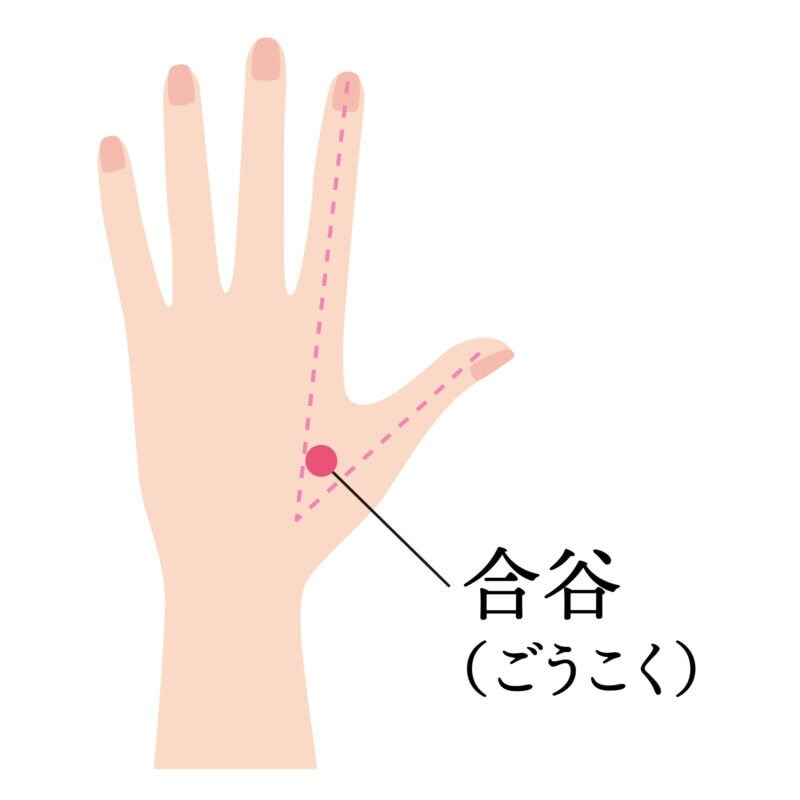息を吐くときに深く吐き切れない場合は、五臓の肺の力が弱っている可能性があります。東洋医学では肺と皮膚はつながっていて、衛気の流れにも直接関わっていると考えられているので、この肺と皮膚の気の流れをよくする合谷(ごうこく)のツボを押すことがおすすめです。手の甲の親指の骨と人差し指の骨が交わった所からやや人差し指側にあるへこんだ部分にあり、ここを反対の手の親指でゆっくりとほどよい強さで数回押しましょう。