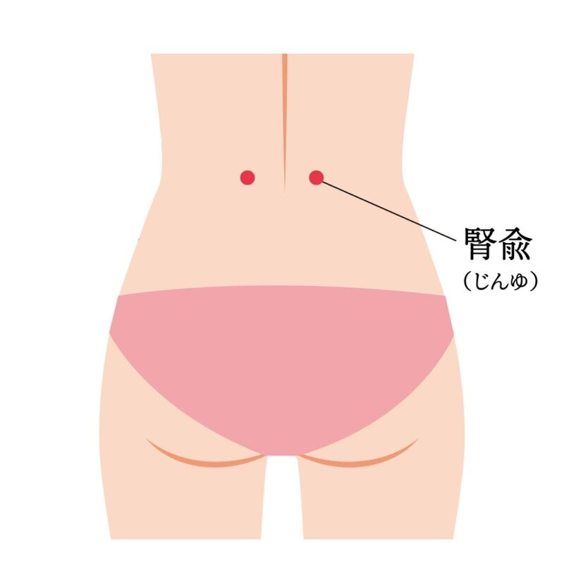 息を吸うときにおなかから深く吸えない、途中でせき込む、息切れするなどの場合は、五臓の腎の力が弱っている可能性があります。腎は生命力を蓄える臓ですが、呼吸によって取り込んだ外気のエネルギーを体の深部まで引き入れる「納気」という働きも持っています。この納気の働きを促す腎兪(じんゆ)のツボをよく押しましょう。ウエストの一番細いラインの背骨から指2本分外側にあるツボで、ここを親指でゆっくりとほどよい強さで数回押してください。